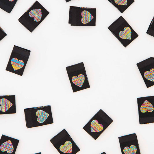 Metallic Rainbow Heart Woven Sewing and Quilting Labels
